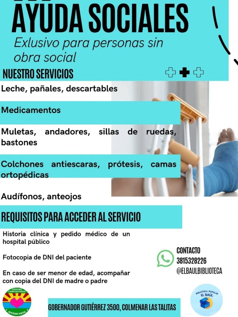 Si no tenés obra social, podés acceder a nuestra gestión gratuita de insumos médicos y elementos de asistencia.