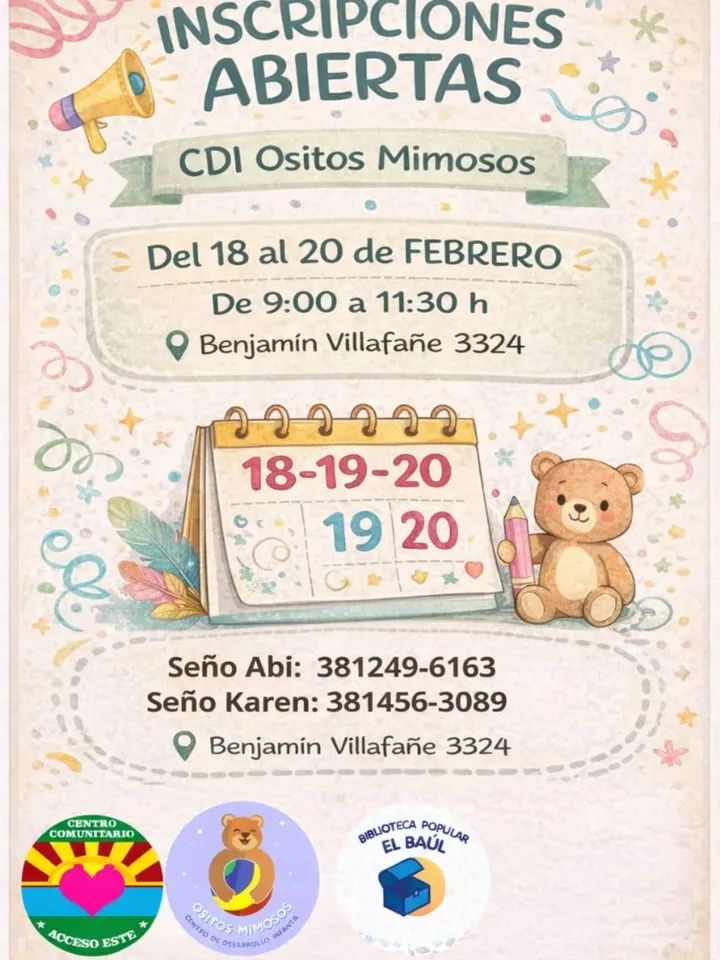 • Inscripciones en Ositos Mimosos 02/04/2026